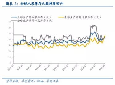 截至2020q?月底Q全球浆厂木库存ؓ46天,环比增加2天,持箋回升?/p>