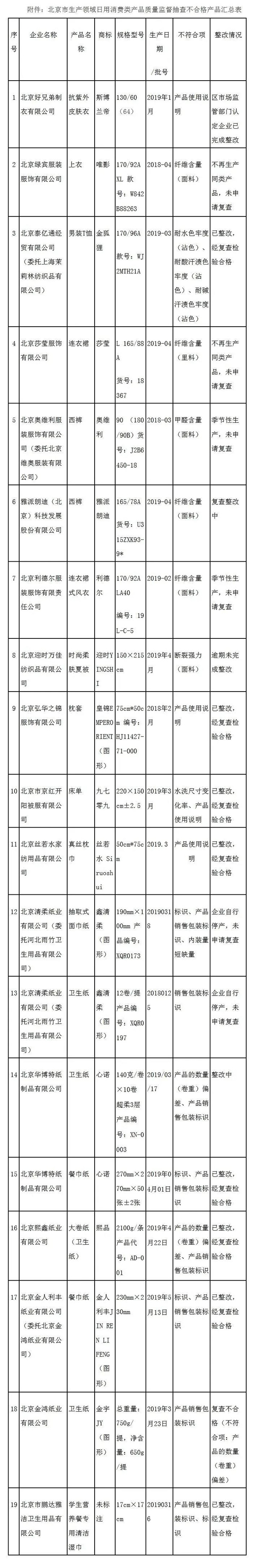 對于抽查發現的不合格產品生產企業,北京市市場監督管理局已責成相關區市場監管部門依法進行查處。除個別企業外,繼續生產的企業已按要求進行了整改,部分完成整改的企業經復查檢驗合格。