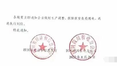 為進一步確保民生用電,四川省于8月20日再度發布《關于擴大工業企業讓電于民實施范圍的緊急通知》,對全省工業企業放高溫假、讓電于民的期限延長,時間為2022年8月20日00:00至25日24:00。