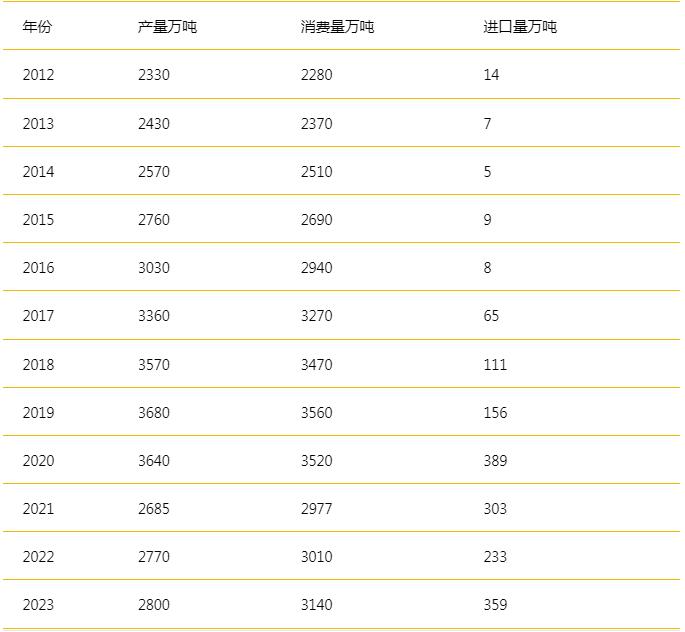 2012-2024年我國瓦楞紙產(chǎn)、銷及進口量:
