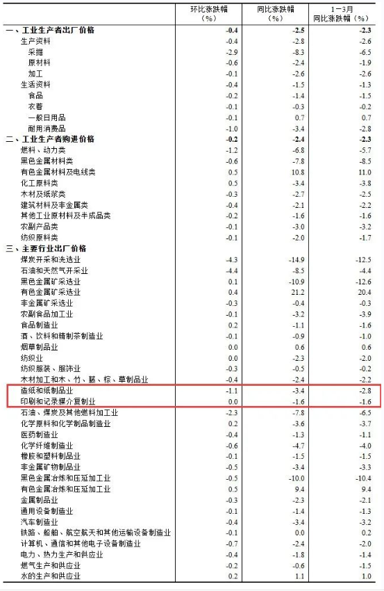 2025年3月份造紙和紙制品業(yè)工業(yè)生產(chǎn)者出廠價(jià)格同比下降3.4%,2025年1—3月份造紙和紙制品業(yè)工業(yè)生產(chǎn)者出廠價(jià)格同比下降2.8%。