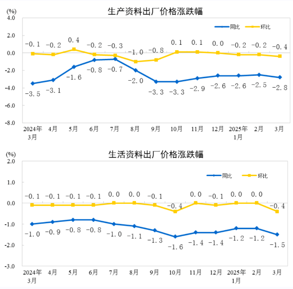 2025年3月份工業(yè)生產(chǎn)者價(jià)格主要數(shù)據(jù)