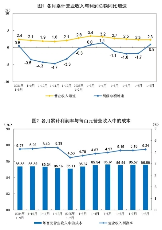 國(guó)家統(tǒng)計(jì)局工業(yè)司首席統(tǒng)計(jì)師于衛(wèi)寧解讀2025年1—8月份工業(yè)企業(yè)利潤(rùn)數(shù)據(jù)表示,1—8月份,在宏觀政策發(fā)力顯效、全國(guó)統(tǒng)一大市場(chǎng)縱深推進(jìn),疊加去年同期低基數(shù)等多重因素作用下,規(guī)模以上工業(yè)企業(yè)利潤(rùn)同比增長(zhǎng)0.9%,裝備制造業(yè)支撐有力,不同規(guī)模企業(yè)利潤(rùn)均有所改善。工業(yè)企業(yè)利潤(rùn)明顯改善;工業(yè)企業(yè)營(yíng)收保持穩(wěn)定增長(zhǎng);裝備制造業(yè)“壓艙石”作用明顯;原材料制造業(yè)利潤(rùn)增長(zhǎng)較快,消費(fèi)品制造業(yè)利潤(rùn)由降轉(zhuǎn)增;不同規(guī)模企業(yè)利潤(rùn)均有改善,私營(yíng)企業(yè)利潤(rùn)明顯加快;8月企業(yè)單位成本下降,營(yíng)收利潤(rùn)率回升。