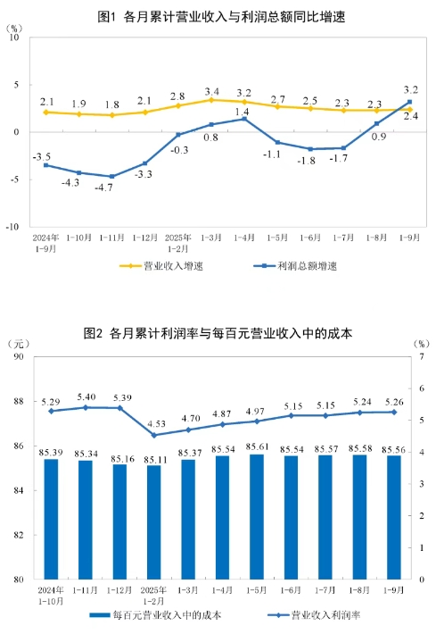 國家統(tǒng)計(jì)局工業(yè)司首席統(tǒng)計(jì)師于衛(wèi)寧解讀2025年1—9月份工業(yè)企業(yè)利潤數(shù)據(jù)表示,1—9月份,各地區(qū)各部門認(rèn)真落實(shí)更加積極有為宏觀政策,培育壯大新經(jīng)濟(jì)增長點(diǎn),高技術(shù)制造業(yè)、裝備制造業(yè)等新質(zhì)生產(chǎn)力較快增長,疊加低基數(shù)效應(yīng)影響,規(guī)模以上工業(yè)企業(yè)利潤增速繼續(xù)回升。具體表現(xiàn)為:工業(yè)企業(yè)利潤加快恢復(fù);工業(yè)企業(yè)營收增長加快;過半行業(yè)利潤增長,六成行業(yè)增速回升;高技術(shù)制造業(yè)帶動作用明顯;裝備制造業(yè)支撐有力,部分行業(yè)增長較快;不同規(guī)模類型企業(yè)利潤均有改善,私營和外資企業(yè)利潤明顯加快;營收利潤率回升。