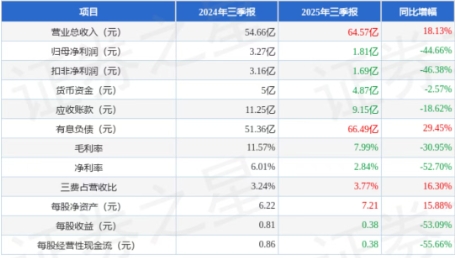 公司營業總收入64.57億元,同比上升18.13%,歸母凈利潤1.81億元,同比下降44.66%。