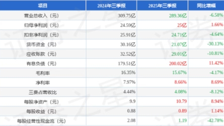 公司營業總收入289.36億元,同比下降6.58%,歸母凈利潤25.0億元,同比上升1.66%。