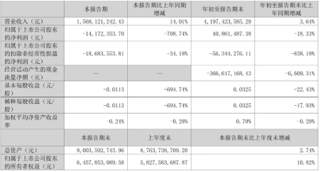 公司實現營業總收入52.34億元,同比下降1.94%;歸母凈利潤虧損9432.39萬元,上年同期盈利6998.55萬元。