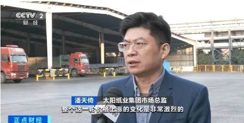 太陽紙業集團市場總監潘天倚:“這一輪價格上漲是非常激烈的,到目前為止,我們跟上半年的價格相比,上漲幅度基本上達到25%以上。”