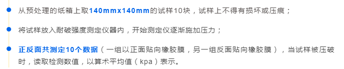 耐破強(qiáng)度是指在實(shí)驗(yàn)條件下瓦楞紙板在單位面積上所能承受的垂直于試樣表面的均勻增加的額最大壓力值。