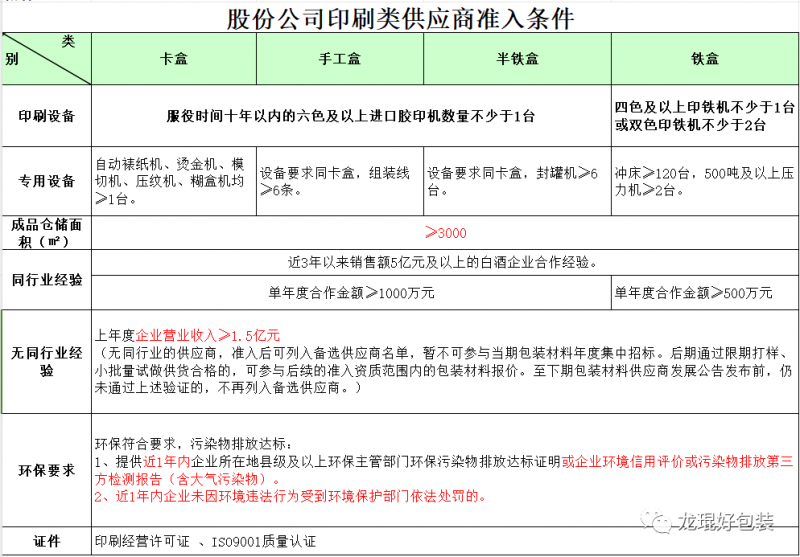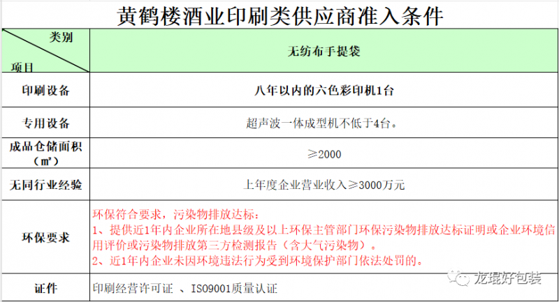 ②黃鶴樓酒業印刷類供應商準入條件