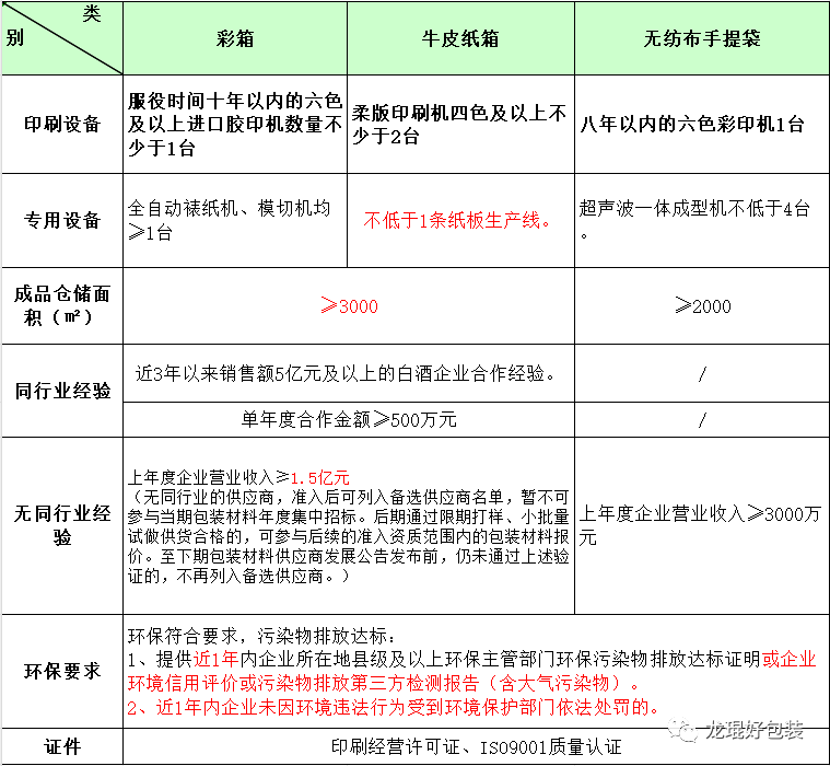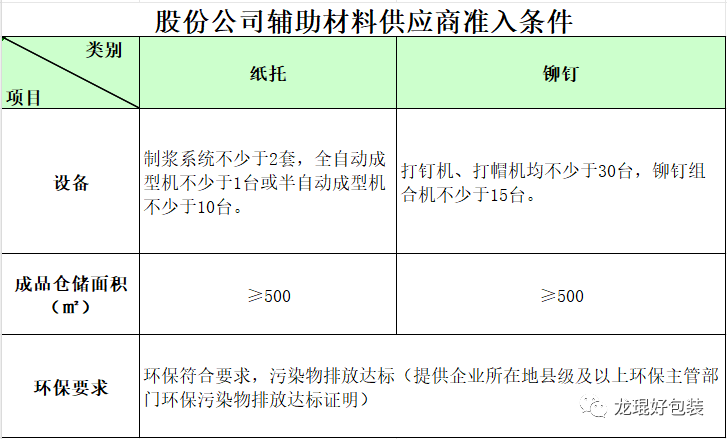 附件1:股份公司包裝材料供應商準入條件