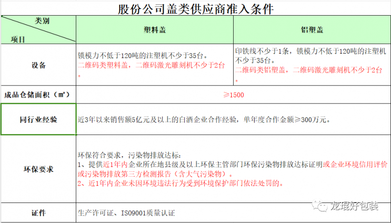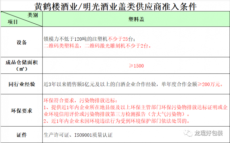 ④黃鶴樓酒業/明光酒業蓋類供應商準入條件
