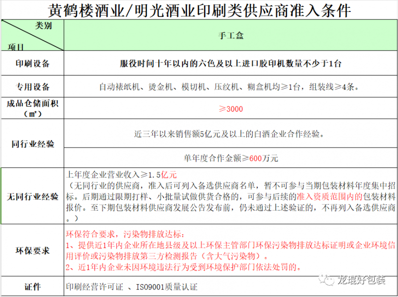 ①黃鶴樓酒業/明光酒業印刷類供應商準入條件