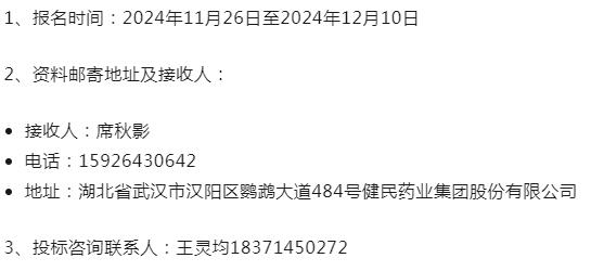 2、招標(biāo)單位:健民藥業(yè)集團(tuán)股份有限公司與健民集團(tuán)葉開泰國藥(隨州)有限公司。