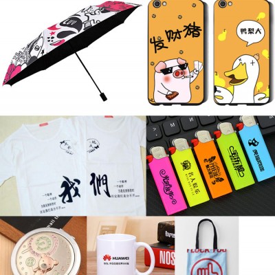 各種異型物品如:金屬、玻璃、橡膠、塑料、陶瓷、紡織品、不干膠、掛歷臺歷、衣服、茶杯、大理石印字、水晶像、瓷像、仿金屬鐳射浮雕像、竹木器具等。