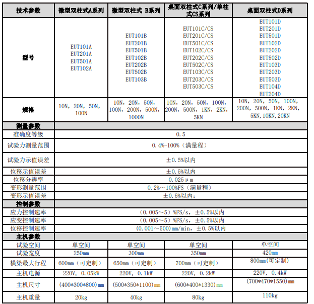 主要用于各種材料及產品的拉伸、壓縮、彎曲、剪切、撕裂、剝離等力學性能測試,可實現 應力、應變、速度等組合命令控制。可根據GB、ISO、ASTM、DIN、JIS等試驗標準,自動求 取最大試驗力、彈性模量、斷裂力、屈服強度、延伸強度、抗拉壓強度、各種伸長應力、伸長 率等參數。
