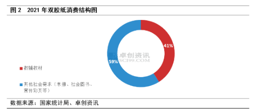 根據卓創資訊數據調研,教輔教材類訂單印刷所需的雙膠紙量占雙膠紙國內消費量的41%左右 ,平均在校生數增速的放緩,對于教材類相關需求的釋放可能有些許收緊影響。