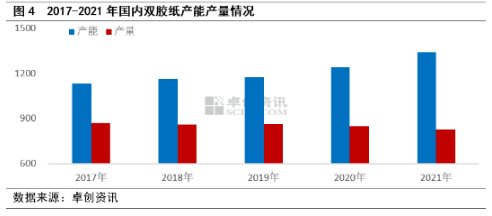 綜上所述,從需求面來說,出版需求平穩釋放,但教輔教培類訂單的減少,對于雙膠紙市場支撐有所不足,存在利空影響。同時雙膠紙產能過剩情況持續存在,截至2021年底,國內雙膠紙產能為1341萬噸,國內消費量867萬噸左右,供過于求局面明顯。以致近年來行業轉產、停機、靈活排產情況時有發生。加之未來幾年內,雙膠紙新增產能的釋放將進一步增加市場的供需壓力,雙膠紙市場或將迎來行業整合期。